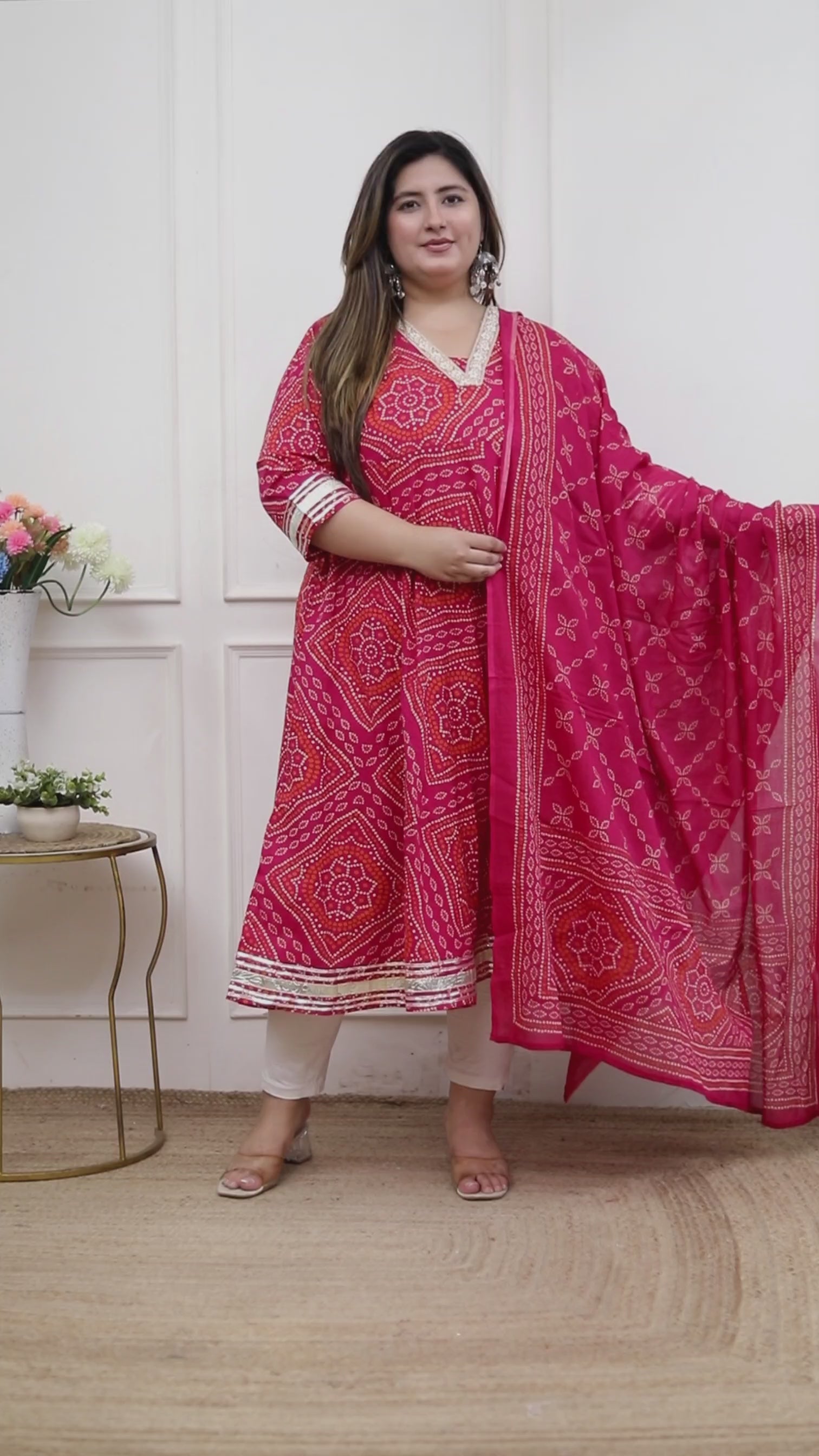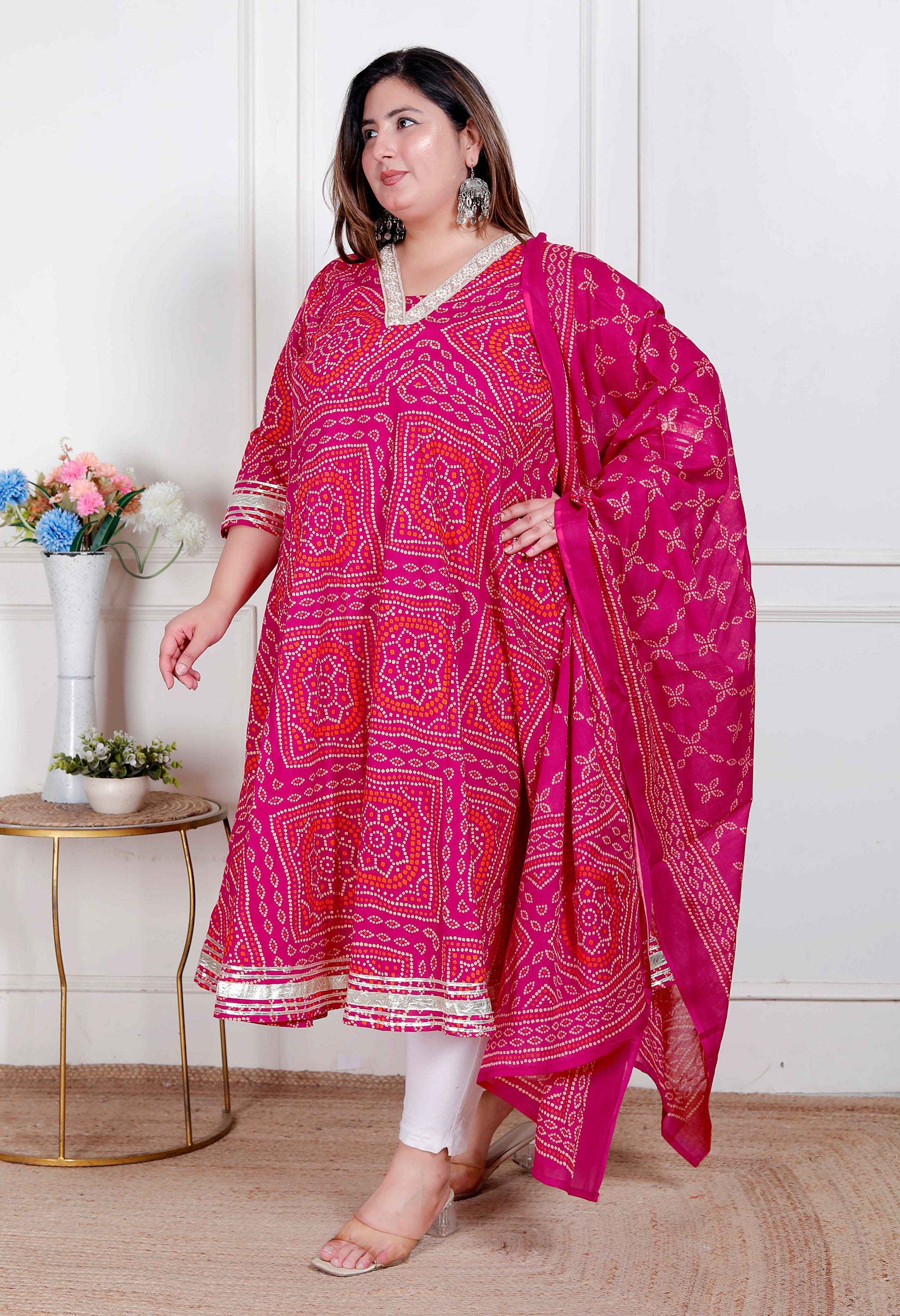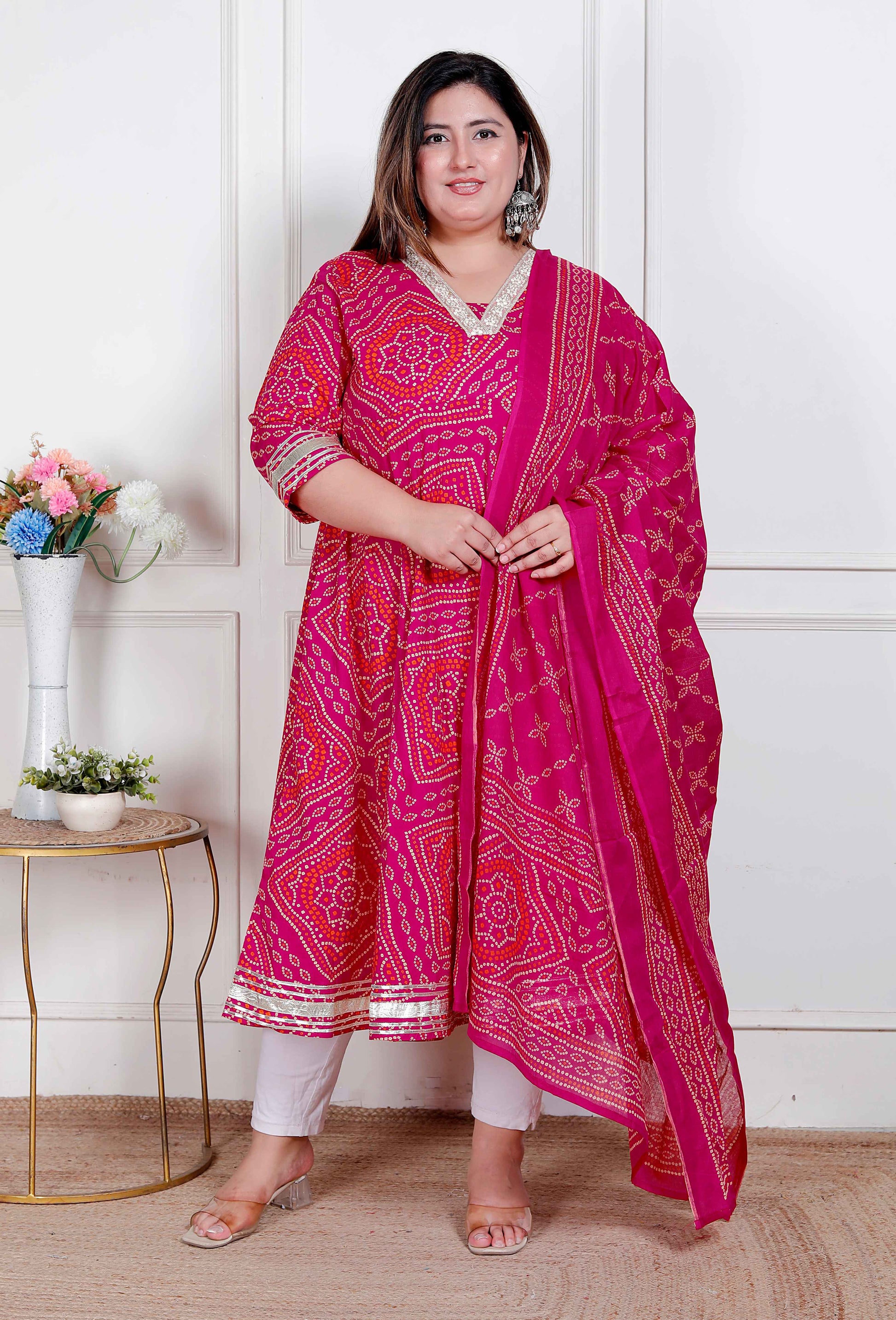 This Beautiful Set Is Our cotton Bandhani anarkali Set. It Is Handcrafted In cotton fabric , This Exquisite Anarkali Outfit Features A Tranquil Color Scheme. You Can'T Miss Out On This One, This Color Goes With All Occasions.