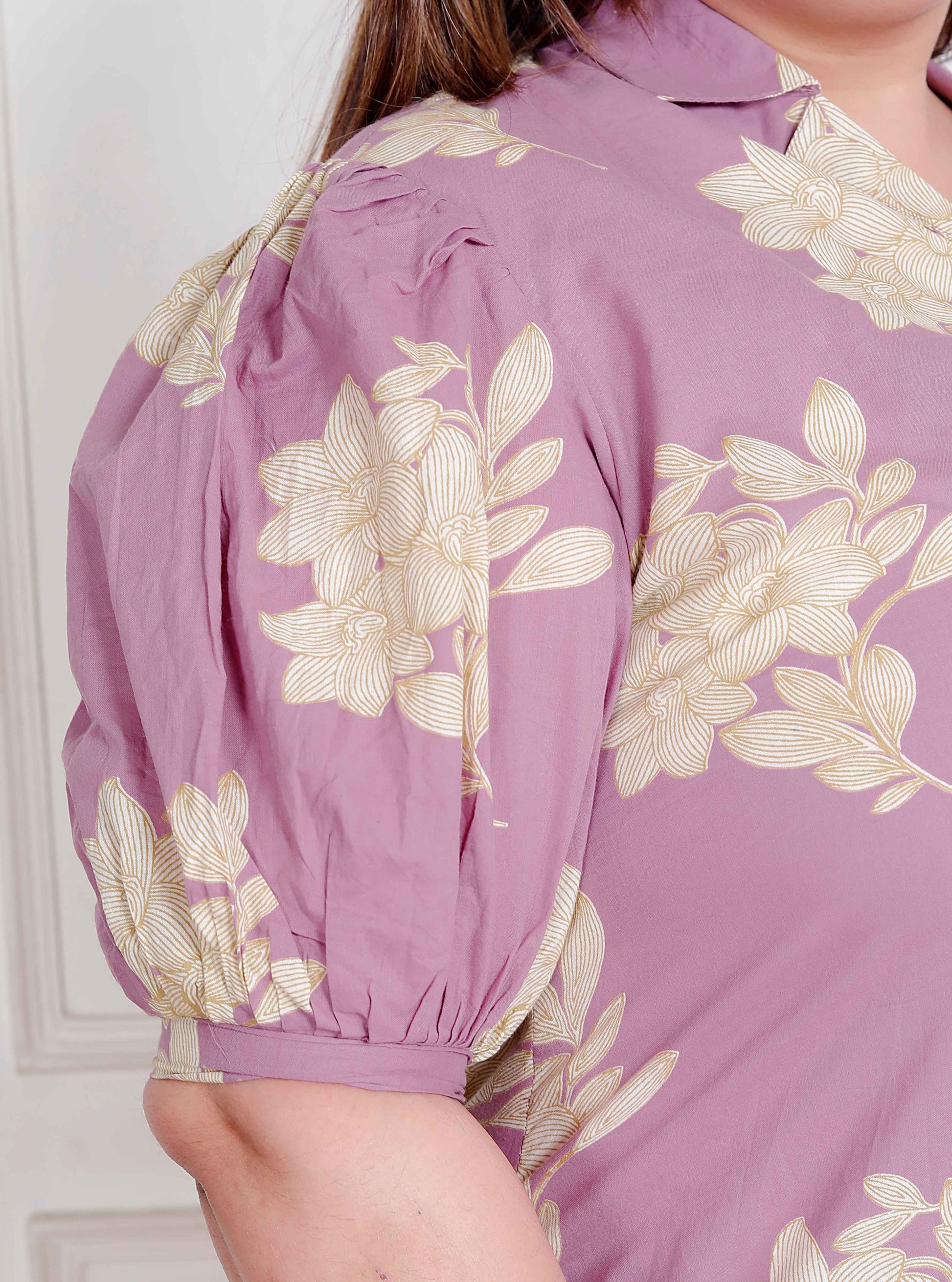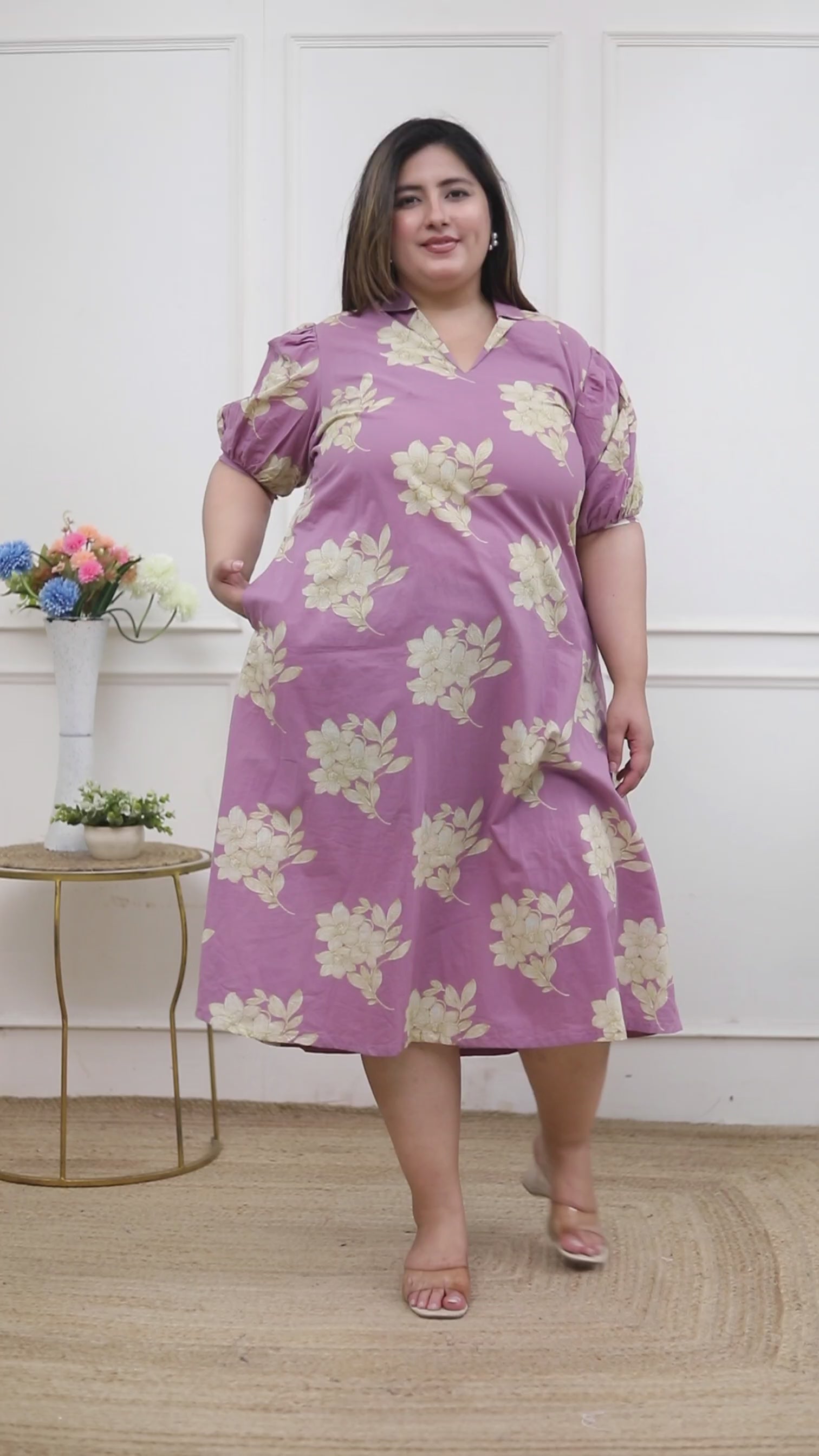 Revamp your wardrobe with this stellar Lavender Maxi dress from Miravan . Tailored from Pure Cotton, it features a Collar neck, slip-on closure, and is accented with a Regular fit. Partner it with a pair of kitten heels and stud earrings for a chic look.