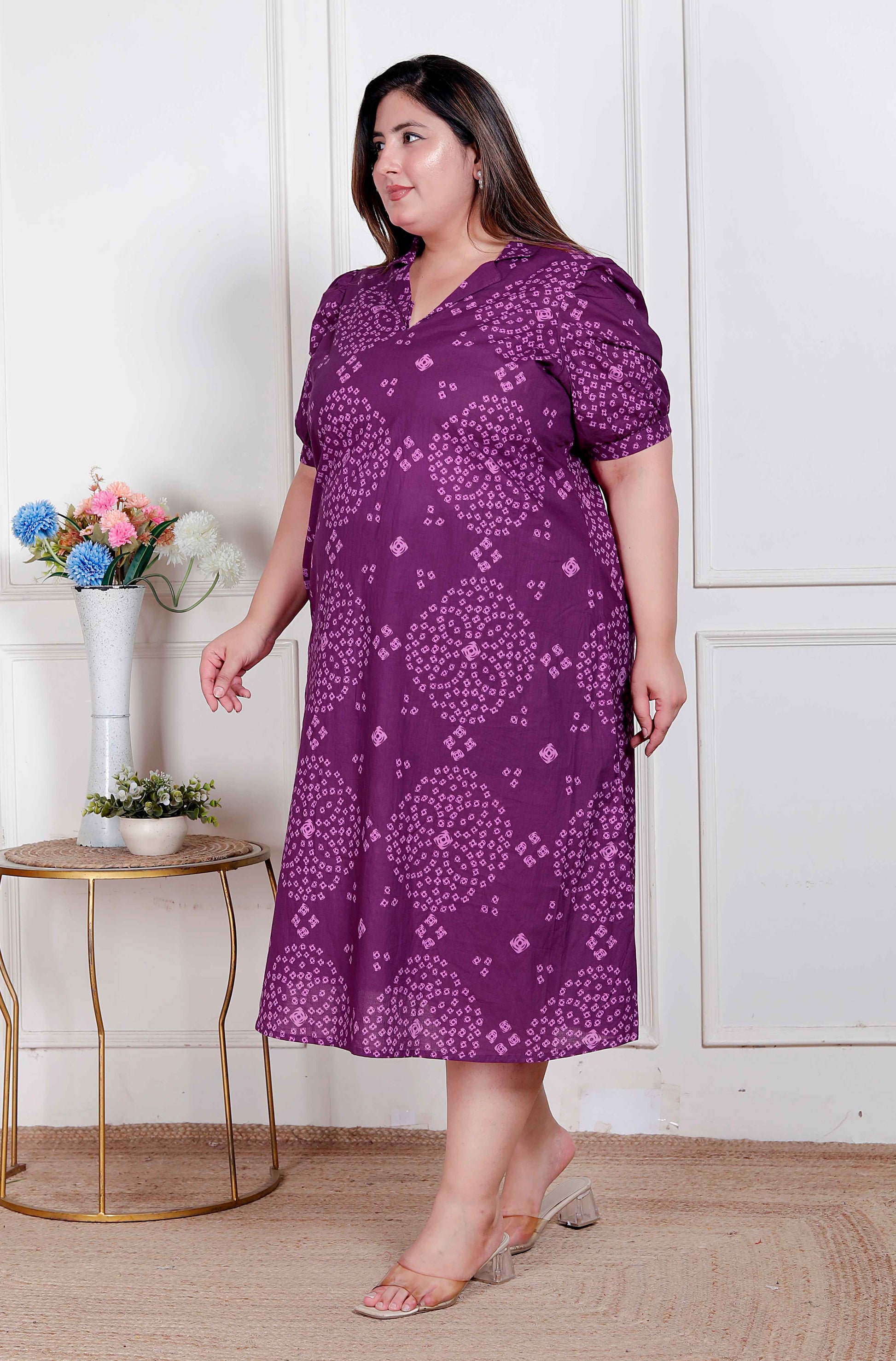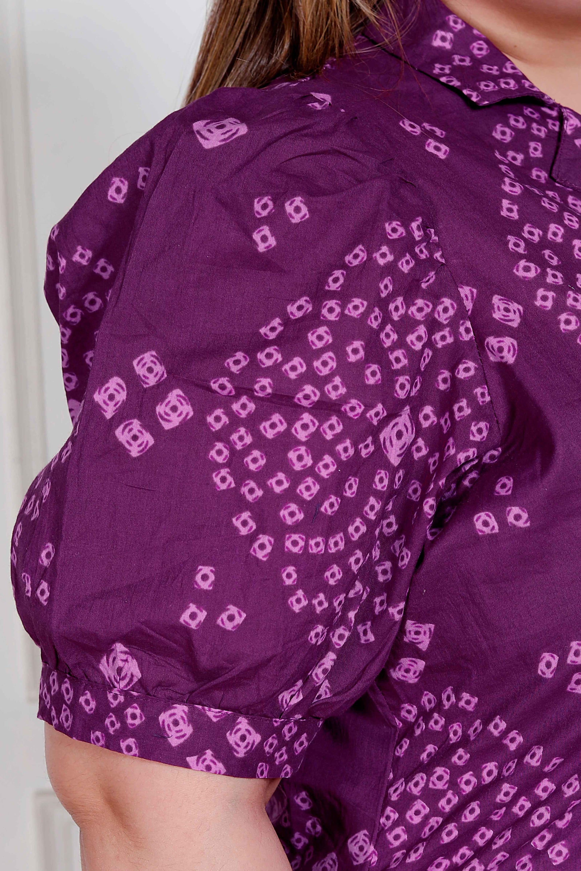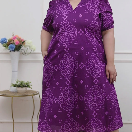 Stay stylish with this Purple dress from Miravan . Made from high quality cotton, it features pull on closure and Bandhani printed along with half sleeves & Collar neck design. Pair it with sneakers with minimal jewellery to complete your ensemble.