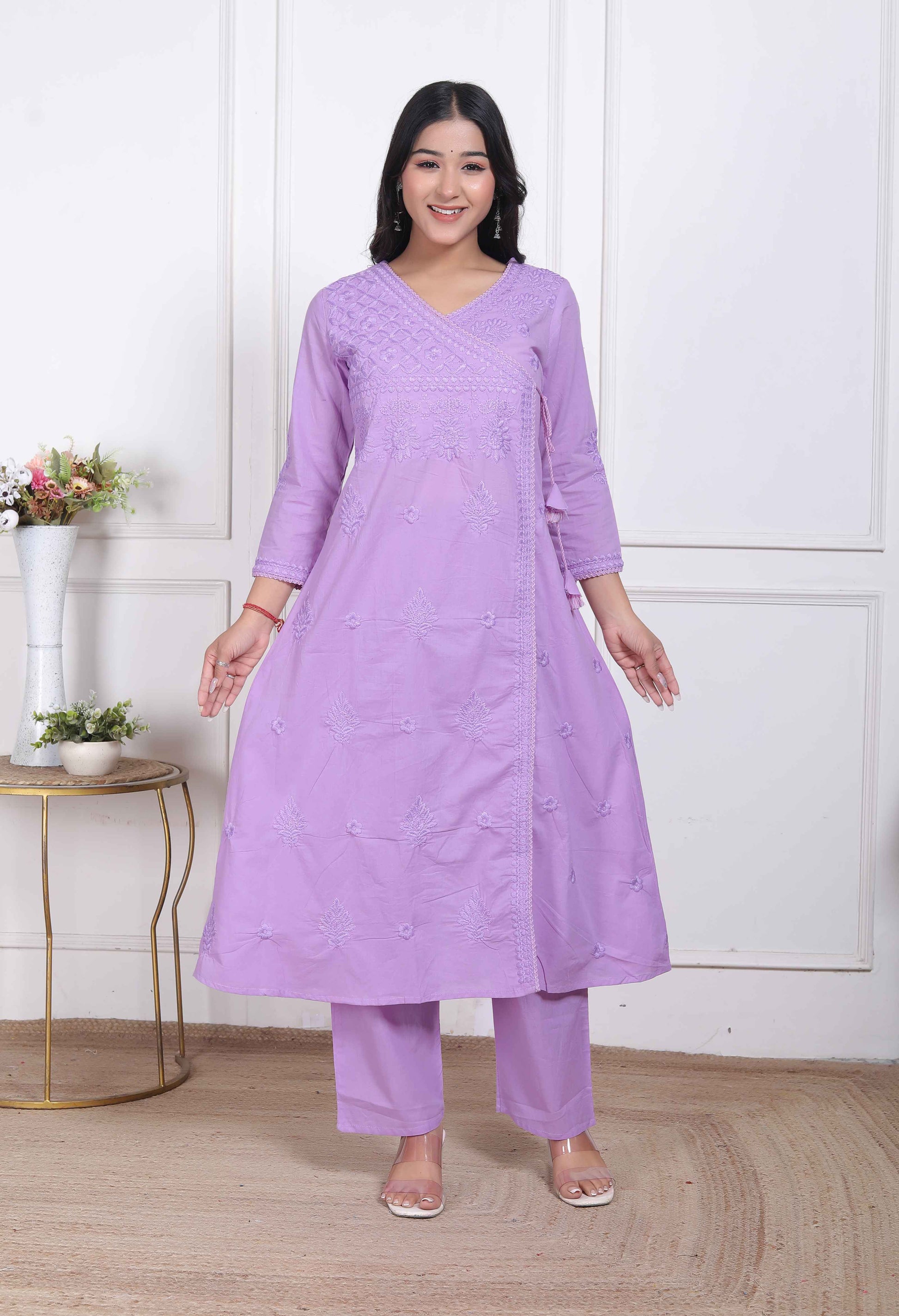 Top Details : Fabric :Cotton Colour :Lavender Work :Embroidery Neck Line :V/Neck Length :44 Inch
