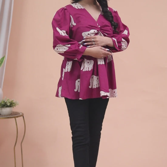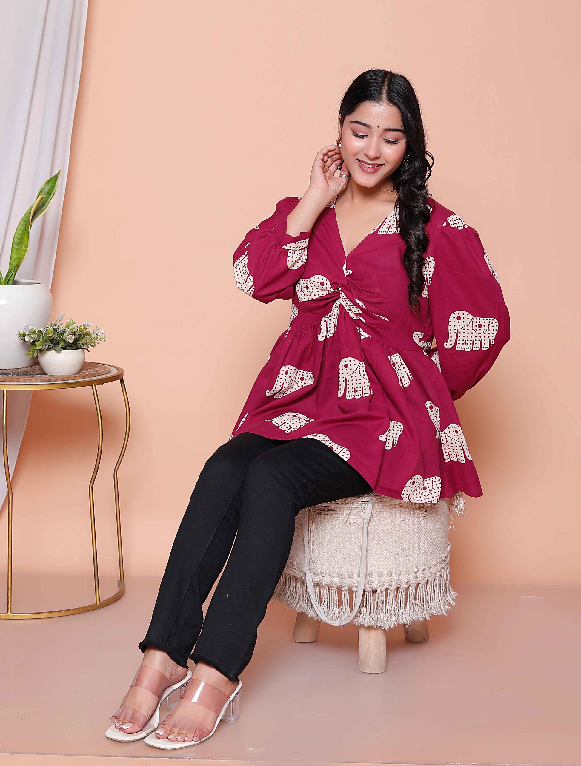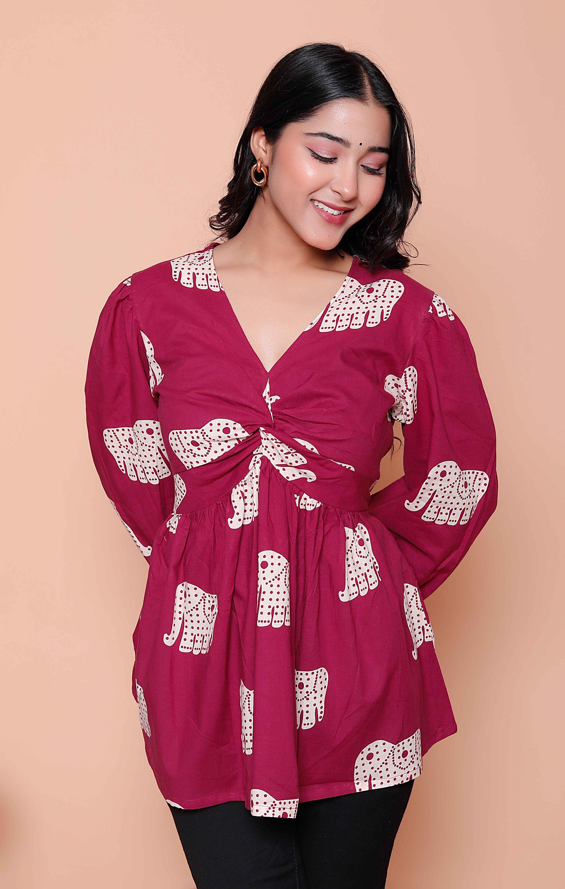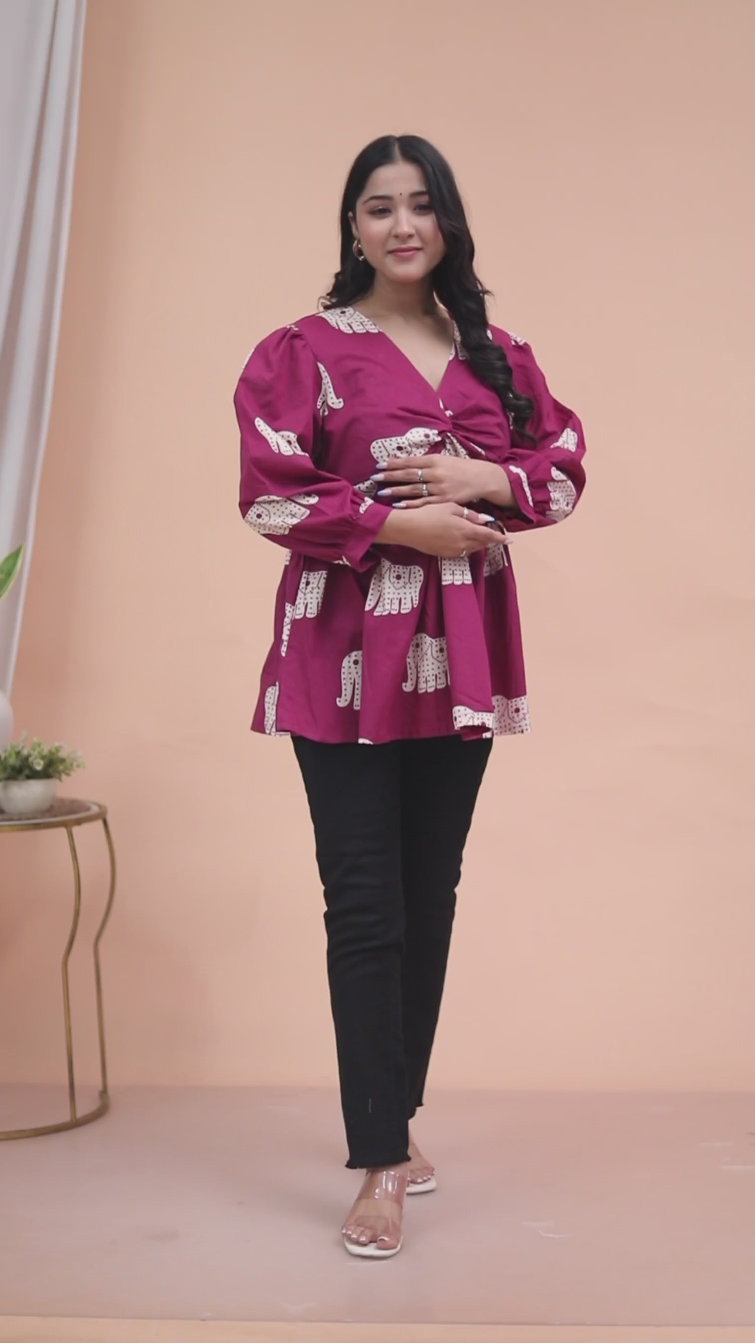 Delicate, airy, and full of movement - this Pure Cotton butterfly Balloon sleeves top is the epitome of effortless elegance. Crafted from lightweight, semi-sheer Cotton , it drapes beautifully over the body, offering both comfort and style on warm days.