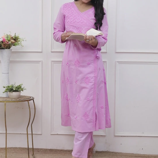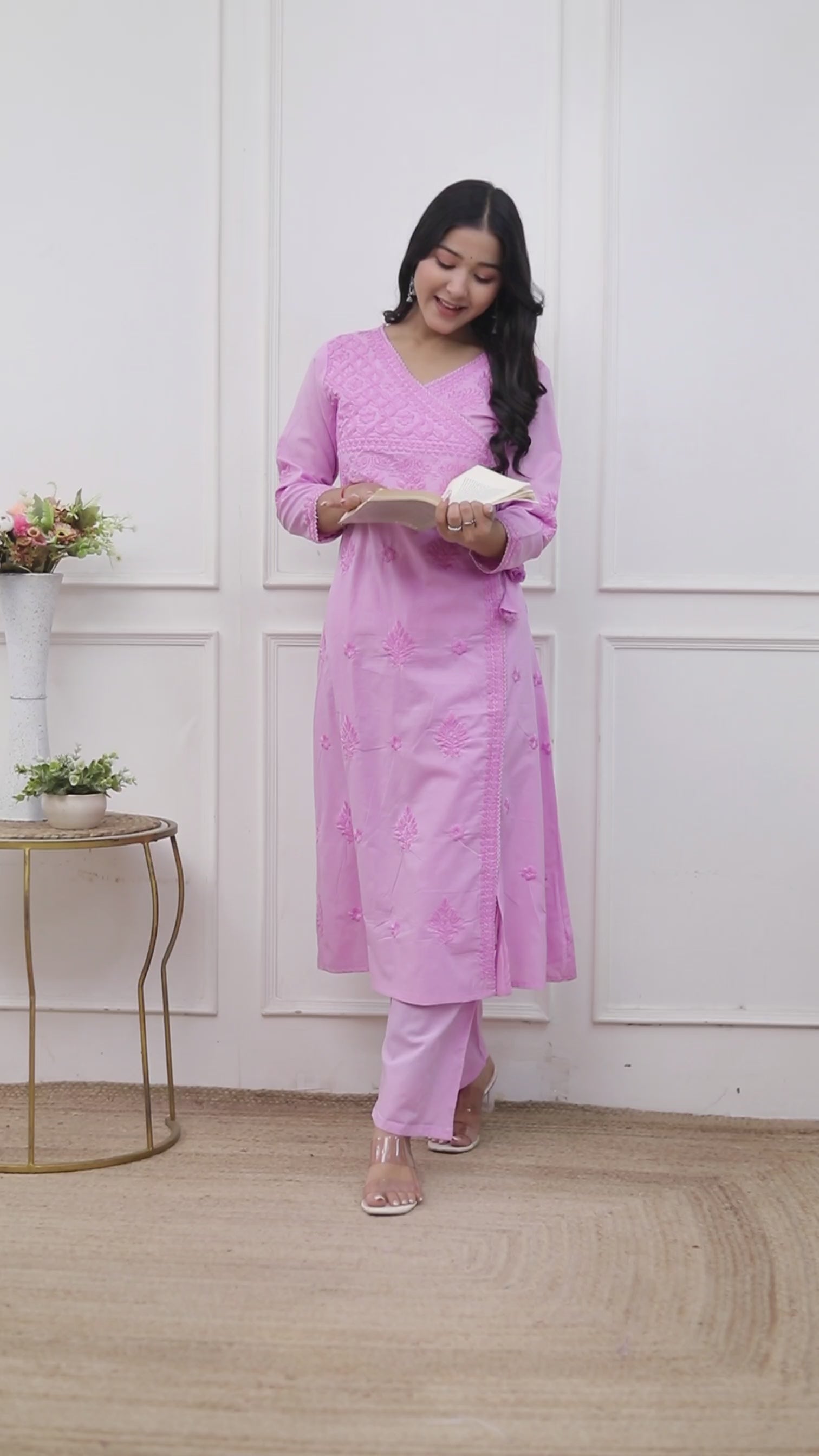 Elevate your ethnic wardrobe with this authentic Lucknowi Kurta Palazzo Set. Meticulously crafted with traditional techniques, this ensemble features a 44-inch kurta paired with a 38-inch palazzo.