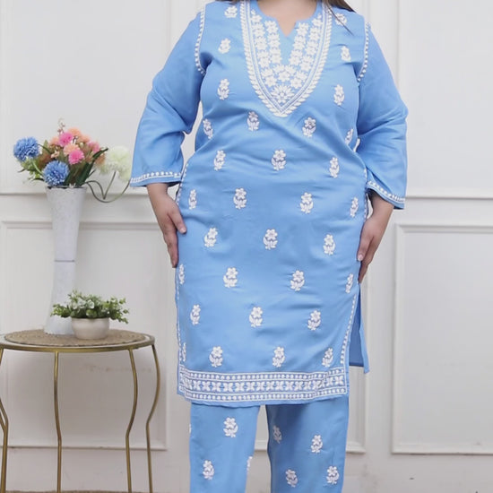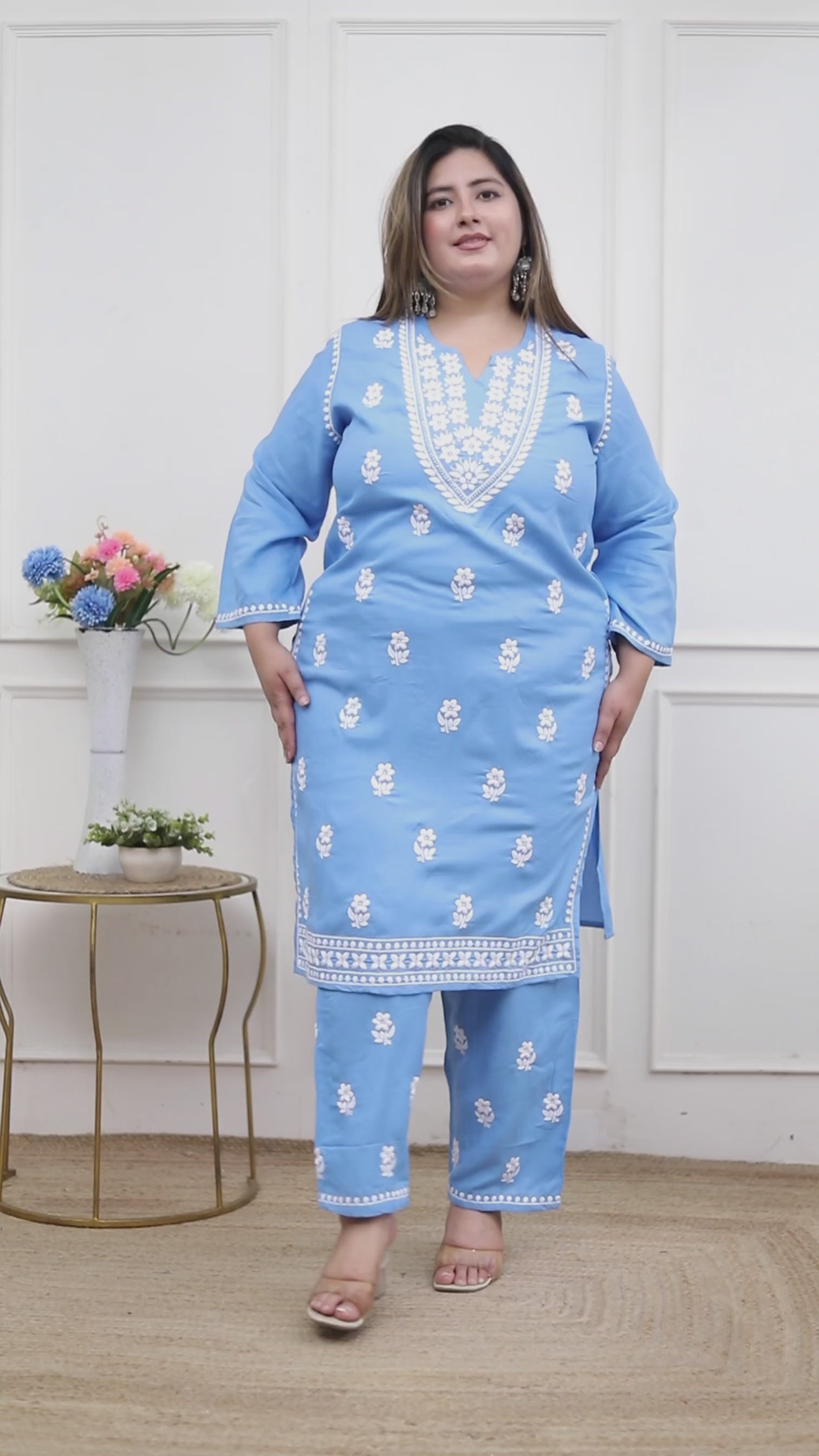 Top Details : Fabric : Cotton Color: Sky.Blue Print/Pattern: Floral Print Neck Line :Key-Hole Neck Length :44 Inch