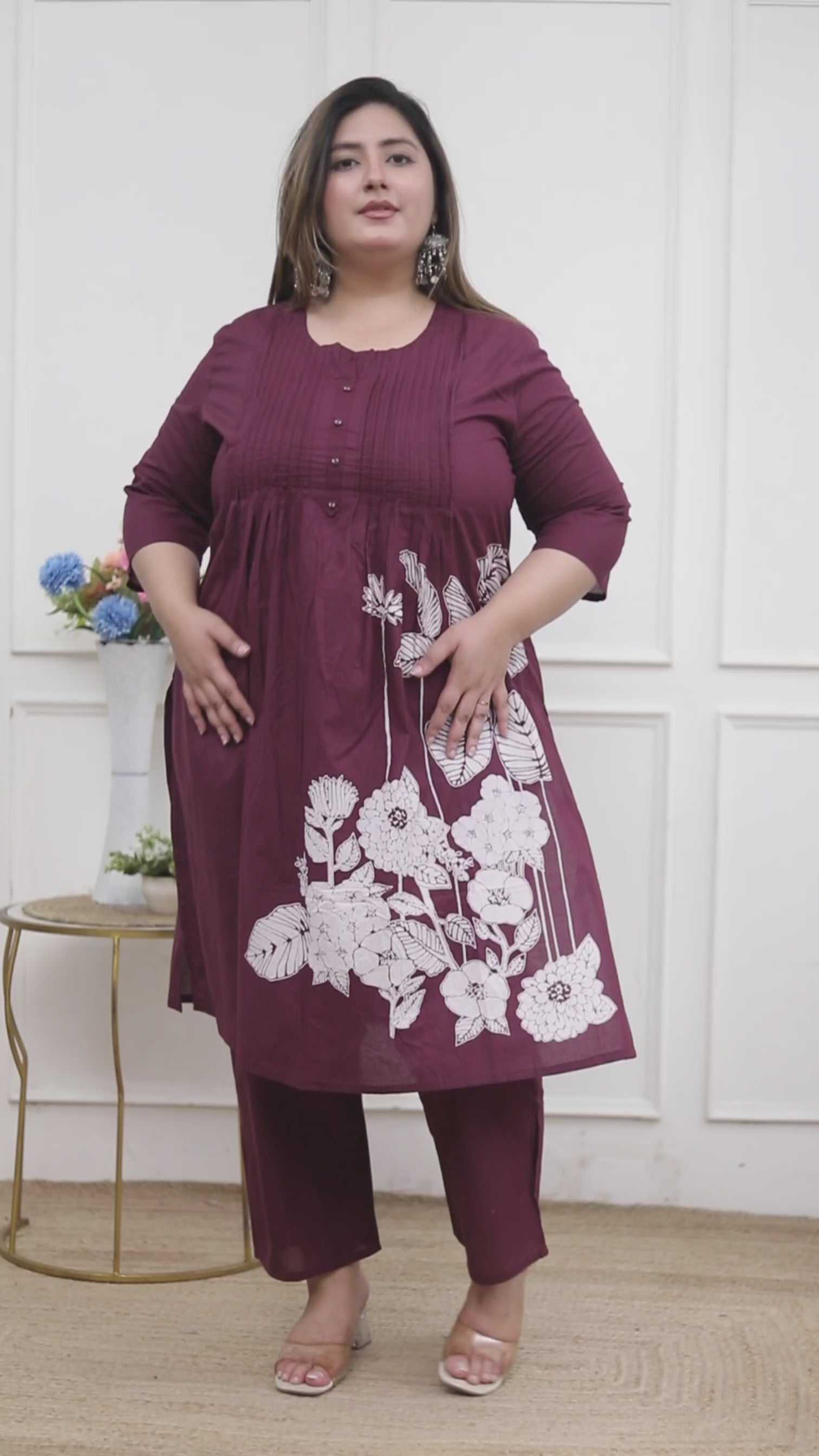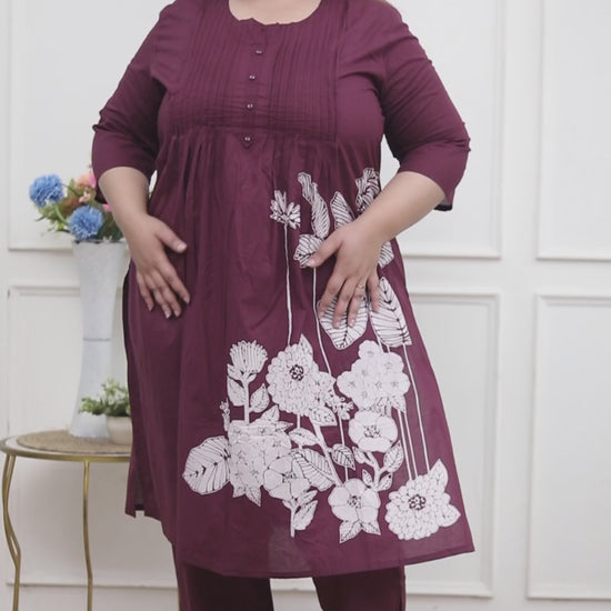 Miravan womens plus size Wine Floral Kurta with Palazzo